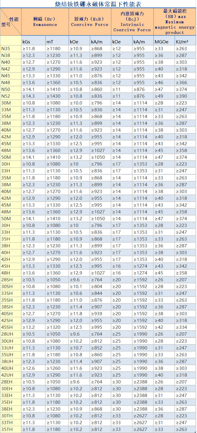 • 釹鐵硼磁體主要性能參數