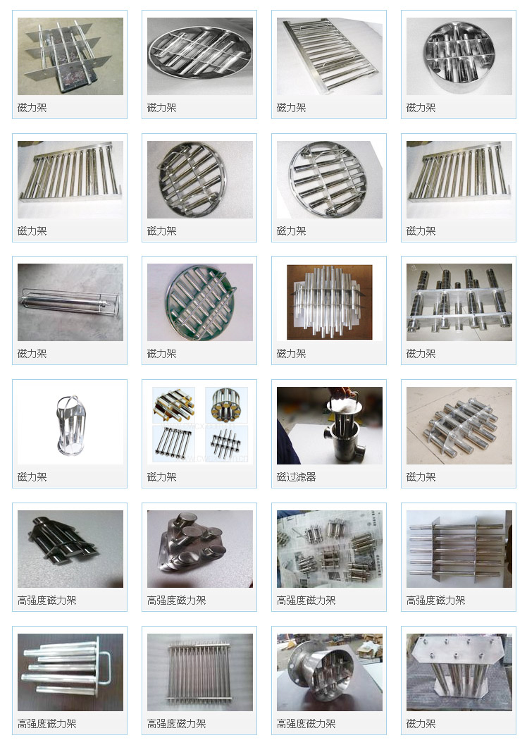 磁性過濾架C磁力架)主要用于清除粉狀、顆粒狀原料及液體或漿料中的鐵磁性雜質,廣泛適用于陶瓷、電力、礦業、塑料、化工、橡膠、制藥、食品、環保、顏料、染料、電子、冶金等行業。